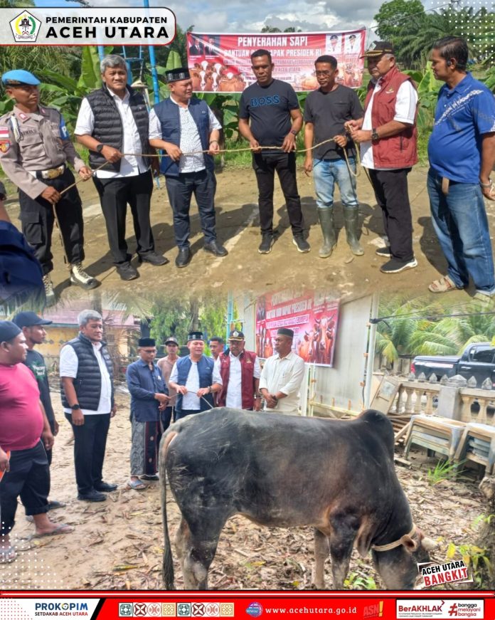 LHOKSUKON, Beritabicara.com-Bupati Aceh Utara H. Ismail A Jalil, MM atau yang akrab di sapa Ayah Wa menyerahkan secara simbolis sapi meugang. Bantuan dari Presiden Prabowo sebesar Rp19,55 miliar untuk pembelian 1.109 ekor sapi untuk disalurkan ke 27 Kecamatan dan 852 gampong di Aceh Utara, Provinsi Aceh. Rabu, 28/2/2026