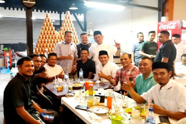 Silahturahmi wagub Aceh dengan teman lama berlangsung seusai solat tarawih di cafe Indatu, bilangan kota Bereunuen kabupaten Pidie.