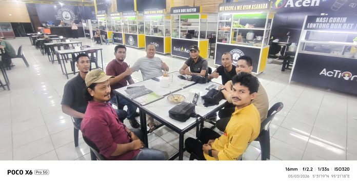 Mantan Wakapolres Aceh Timur Kompol Iswar yang sekarang bertugas sebagai Kanit Tipidkor Polda Aceh menerima kedatangan rekan-rekan pers dari organisasi Dewan Pimpinan Pusat Aliansi Wartawan Aceh Independen (AWAI) di salah satu warung kopi Banda Aceh.Jumat (6/3/2026).