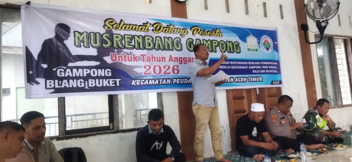Aceh Timur, Berita bicara com-. Desa Gampong Blang Buket menggelar kegiatan acara Musyawarah Perencanaan Pembangunan (musrenbang) untuk tahun anggaran 2026,Kegiatan berlangsung di Meunasah setempat Sabtu (22/11/2025) Jam 09.00 pagi’ WIB.