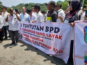 “Makanya, kami juga menuntut tunjangan yang layak, setara dengan perangkat desa. Bimbingan teknik serentak. Memperjelas perbup ADD tentang jumlah operasional BPD. Intinya kita ingin diperkuat dengan perbup tentang fungsi dan tugas BPD tersebut,” kata Muhammad Arham.
