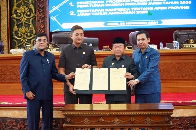 Dalam kesempatan tersebut Gubernur Al Haris juga mengucapkan terima kasih dan apresiasi yang tinggi kepada pimpinan dan seluruh anggota DPRD Provinsi Jambi yang telah bekerja keras menyelesaikan seluruh rangkaian pembahasan APBD Tahun Anggaran 2025 bersama-sama dengan pemerintah daerah.