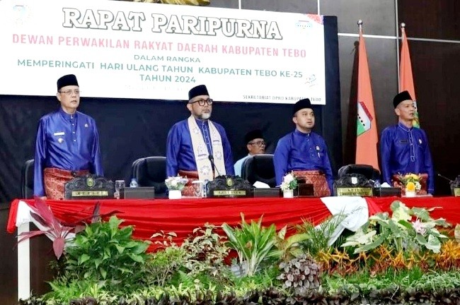 Hal tersebut dikemukakannya saat menghadiri Rapat Paripurna DPRD Kabupaten Tebo Dalam Rangka Hari Ulang Tahun Ke-25 Kabupaten Tebo, bertempat di Aula Gedung DPRD Kabupaten Tebo, Sabtu (12/10/2024).