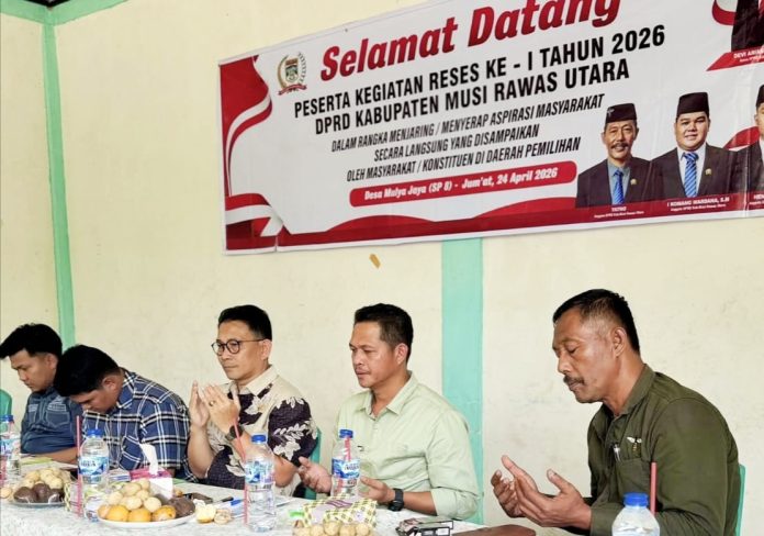 Muratara, Beritabicara.com – Kegiatan Reses Ke-1 Tahun 2026 DPRD Kabupaten Musi Rawas Utara (Muratara) menjadi momentum penting untuk menyerap langsung aspirasi masyarakat. Salah satunya berlangsung di Desa Mulya Jaya (SP8), Kecamatan Nibung, Jumat (24/4/2026).
