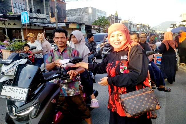 Jalan T. Meurah Adam Kota Fajar Sempat Macet Saat Pemuda Pancasila Aceh Selatan Bagi-Bagi Takjil