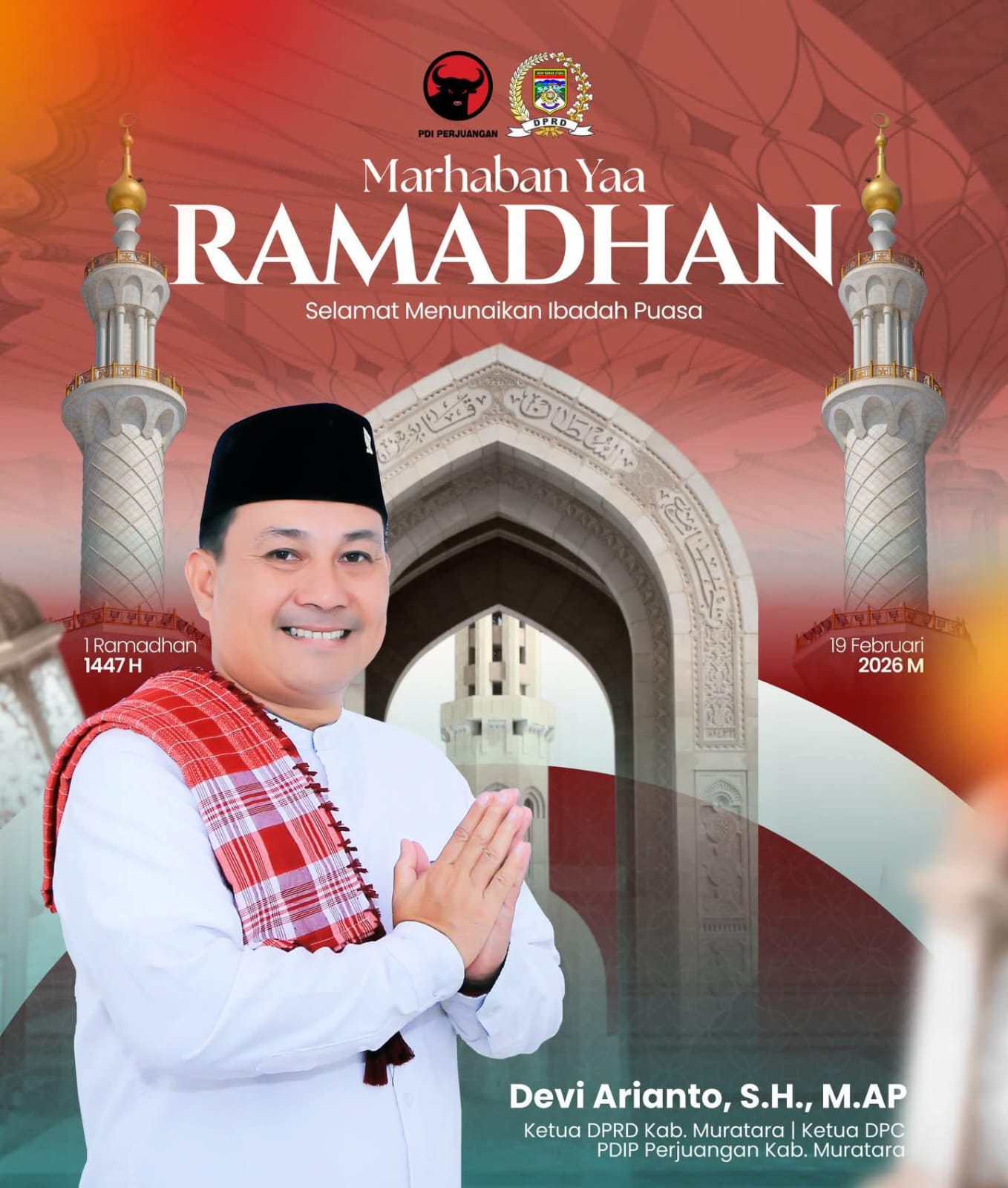 Muratara, Beritabicara.com – Ketua DPRD Kabupaten Musi Rawas Utara (Muratara), Devi Arianto menyampaikan ucapan selamat menunaikan ibadah puasa Ramadan 1447 Hijriah tahun 2026 kepada seluruh masyarakat.