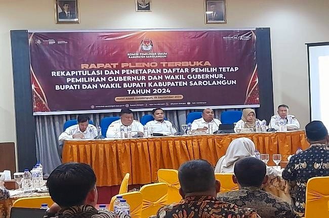 Dari rapat tersebut, sesuai dengan keputusan KPU Kabupaten Sarolangun nomor 216 Tahun 2024 tentang penetapan rekapitulasi Daftar Pemilih Tetap Kabupaten Sarolangun dalam penyelenggaraan pemilihan Gubernur dan Wakil Gubernur, Bupati dan Wakil Bupati Tahun 2024.
