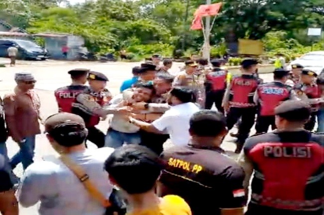 Dengan tegas, para demonstran di tangkap dan di amankan, termasuk kendaraan, alat para pendemo.