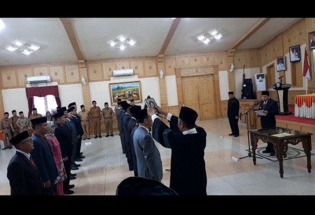 Atas hal tersebut ia langsung memimpin pelantikan dan pengambilan sumpah dan janji Jabatan Pimpinan Tinggi (JPT) Pratama tersebut Senin (10/4/2023) diruang aula besar kantor Bupati.