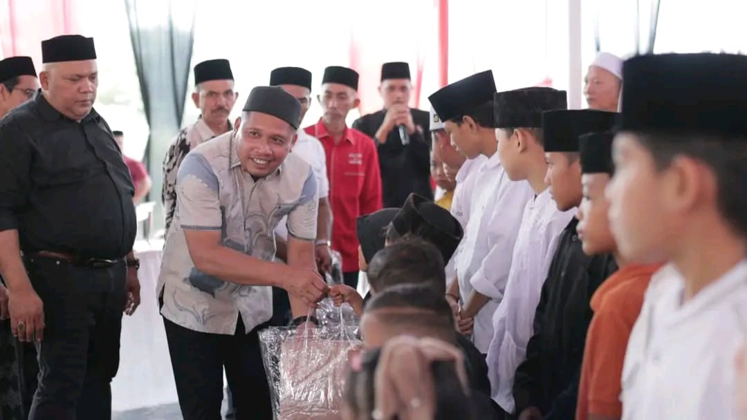 Sebelum memasuki acara buka puasa bersama,ketua DPW partai Aceh (PA) Aceh Timur berserta para pengurus memberikan santunan kepada puluhan anak-anak yatim dan piatu.