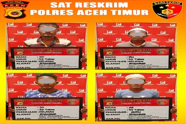 Kapolres Aceh Timur AKBP Nova Suryandaru, S.I.K. melalui Kasat Reskrim Iptu Adi Wahyu Nurhidayat, S.TrK.,S.I.K. mengatakan, penetapan terhadap keempat WNA pada tindak pidana penyelundupan manusia (People Smuggling) sebagaimana dimaksud dalam pasal 120 ayat (1) Undang – undang Republik Indonesia Nomor 6 Tahun 2011 Tentang Keimigrasian setelah pihaknya melakukan penyelidikan di lapangan.