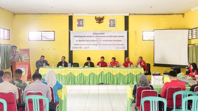 Sarolangun, Beritabicara.com – PT Bahana Karya Semesta dan PT Primatama Kreasimas (Sinarmas Group) bekerja sama dengan Forkopimcam Kecamatan Pauh dan Manggala Agni Daops Sumatera XIII Sarolangun menyelenggarakan kegiatan Sosialisasi Pencegahan Bahaya Kebakaran Hutan dan Lahan (Karhutla) di Aula Kantor Kecamatan Pauh, Jumat (10/4/2026).