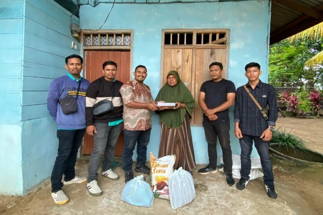 Pimpinan PT Mandala Multifinance Tbk Syariah cabang Idi Abu Chaidir, SE diwakili Koordinator KPM Musliadi, SH bersama rekannya Memberikan bantuan tersebut langsung kepada seorang lansia asal desa gampong jawa Kecamatan Idi Rayeuk.