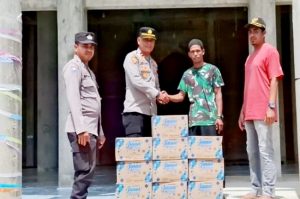 Sederhana Namun Bermakna, Kapolsek Pantee Bidari Serahkan Air Mineral ke Sejumlah Mesjid